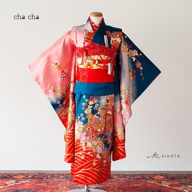 【レンタル商品】[kim009]7歳8歳/119〜134cm[お着物&髪飾りセット]七五三・2部式セパレート着物