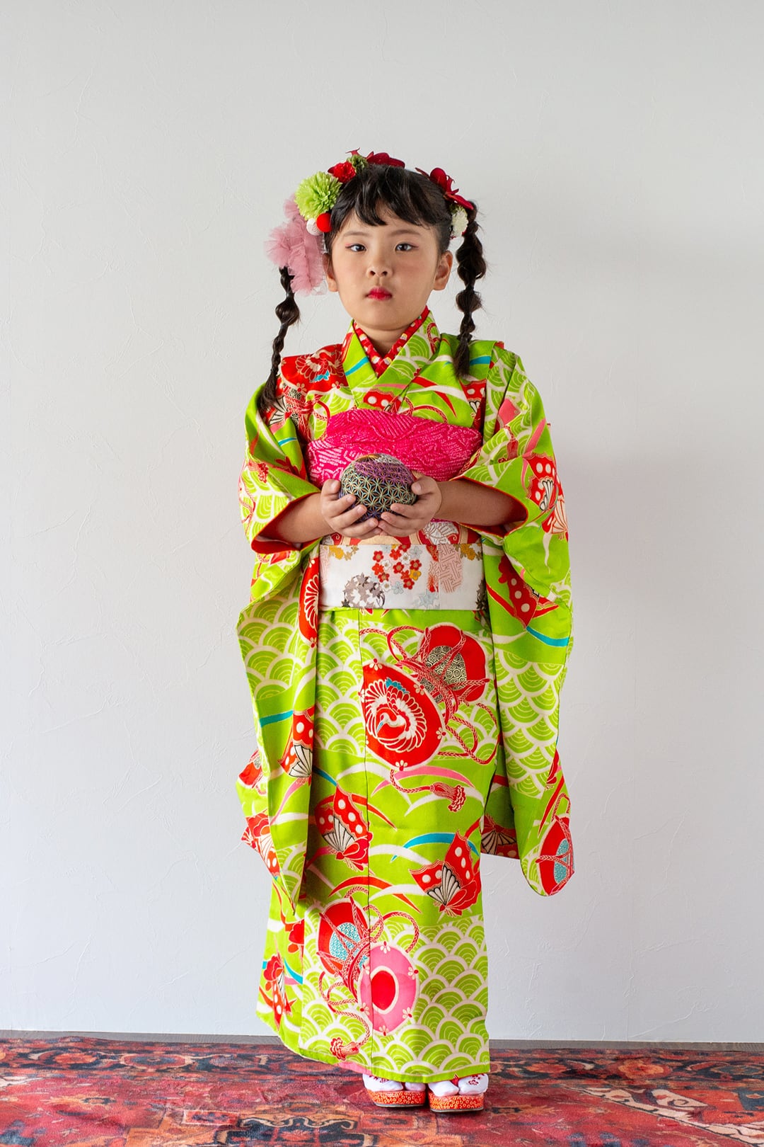 昭和レトロな雰囲気が可愛い、アンティーク調の七五三着物が、簡単に着せられる二部式セパレートタイプで登場!