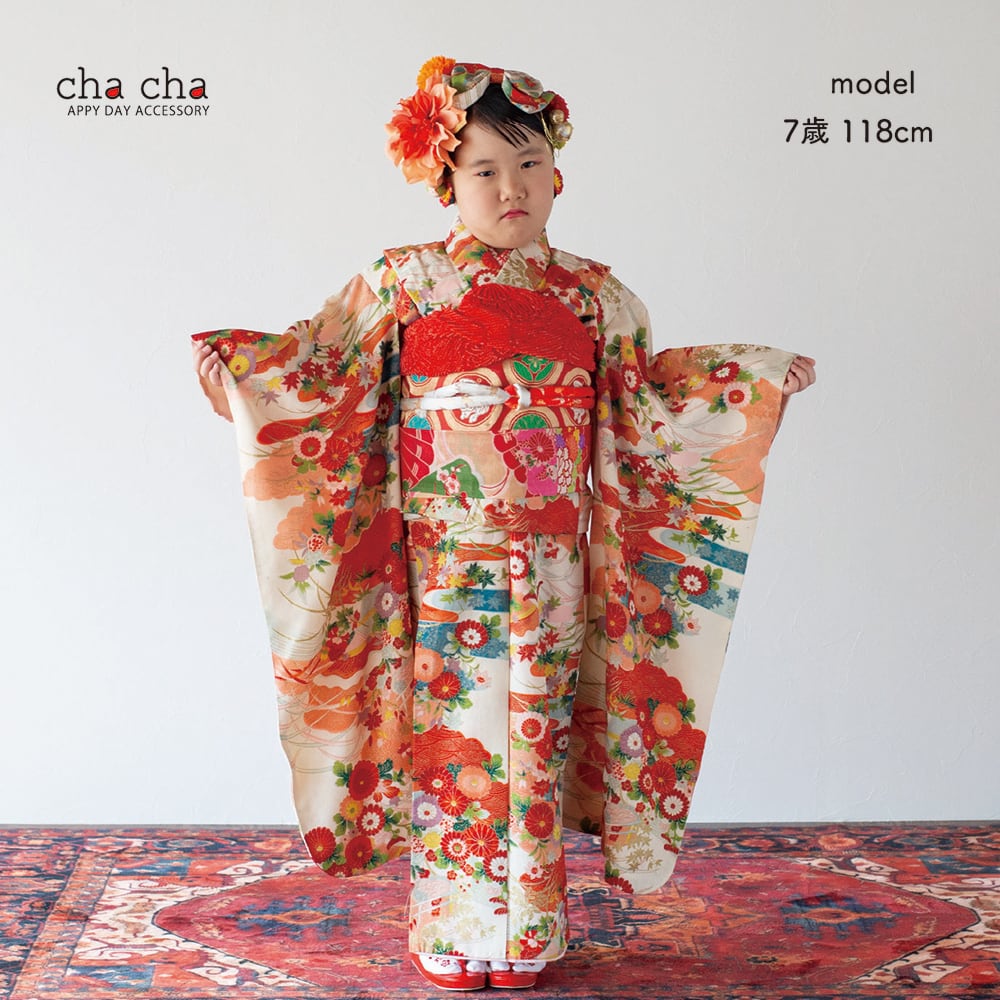 [kim013]6歳7歳8歳/116〜131cm【レンタル商品】[お着物&髪飾りセット]七五三・2部式セパレート着物