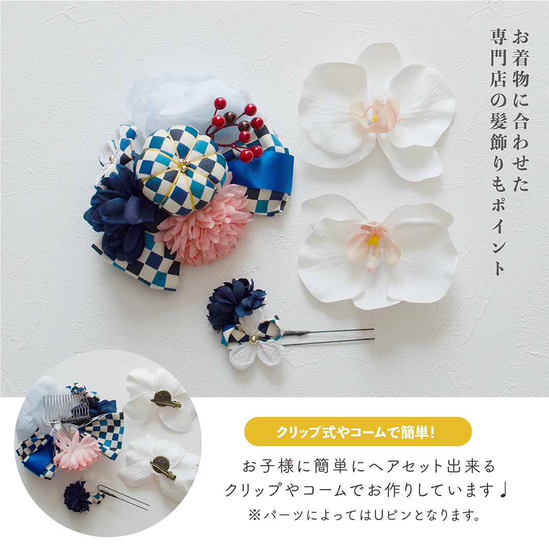 【レンタル商品】[kim018]6歳7歳/108〜123cm[お着物&髪飾りセット]七五三・2部式セパレート着物