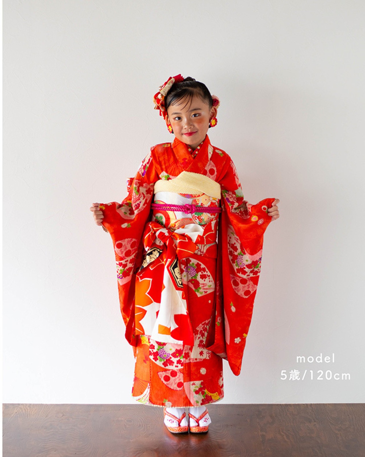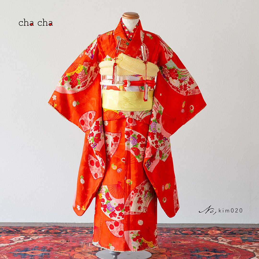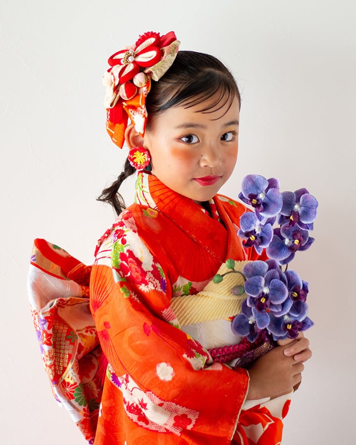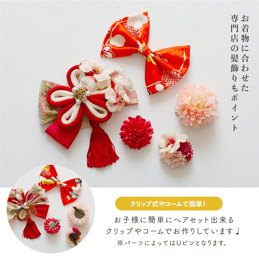 【レンタル商品】[kim020]7歳8歳/119〜134cm[お着物&髪飾りセット]七五三・2部式セパレート着物