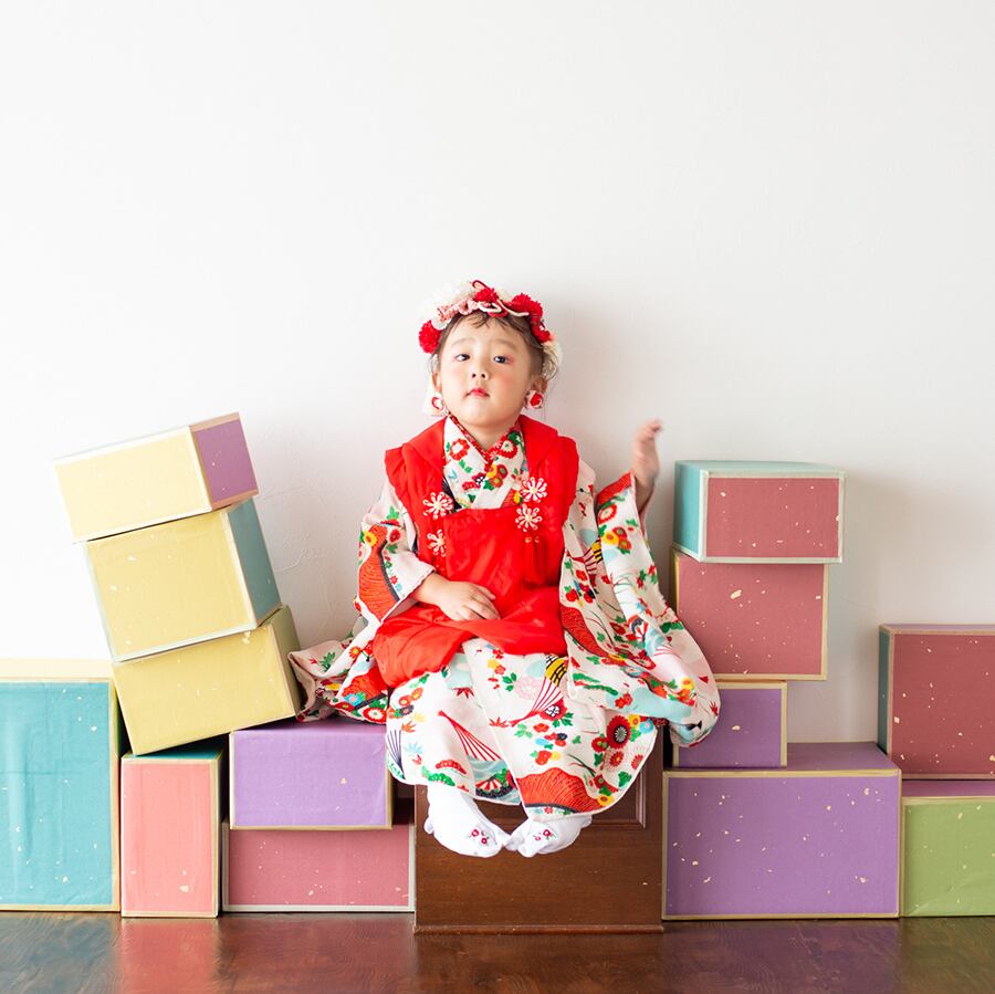 昭和レトロな雰囲気が可愛い、アンティーク調の七五三着物が、簡単に着せられる二部式セパレートタイプで登場!