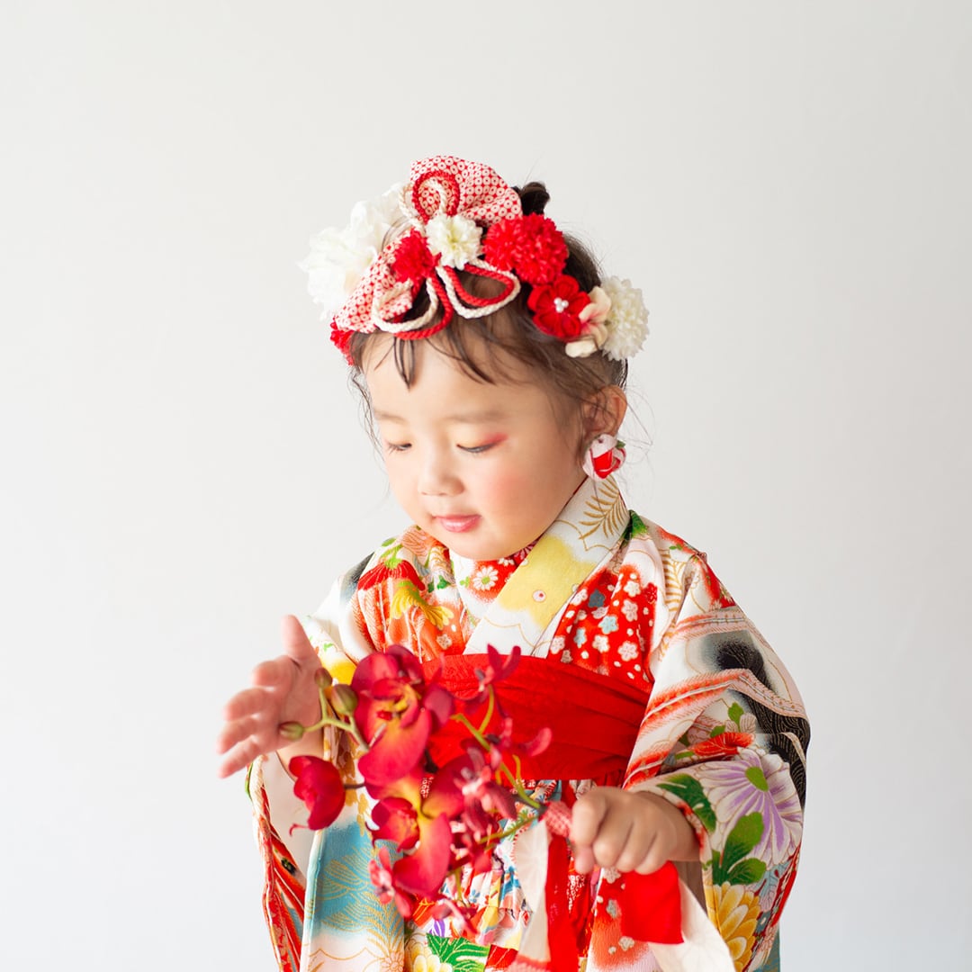 【レンタル商品】[kim-s005]3歳4歳/90〜100cm[お着物&髪飾りセット]七五三・2部式セパレート着物