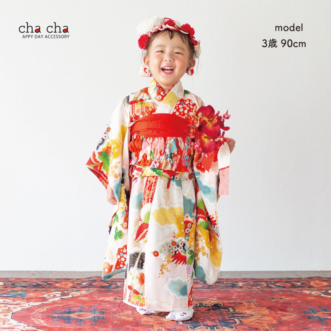 [kim-s005]2歳3歳/85〜95cm【レンタル商品】[お着物&髪飾りセット]七五三・2部式セパレート着物