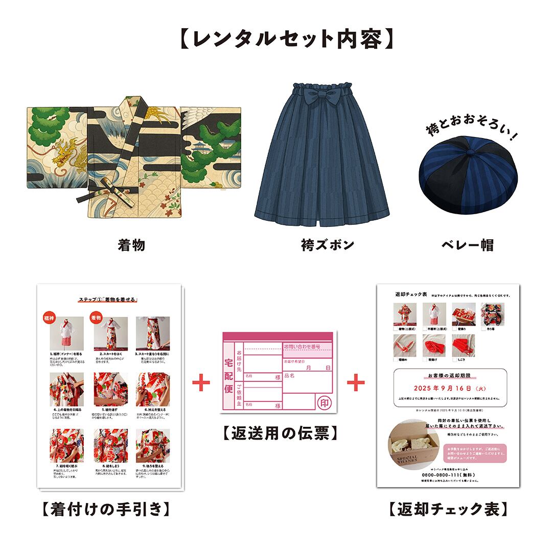 【レンタル商品】[kim-mens004]2歳3歳/90〜99cm[お着物セット]七五三・袴・着物