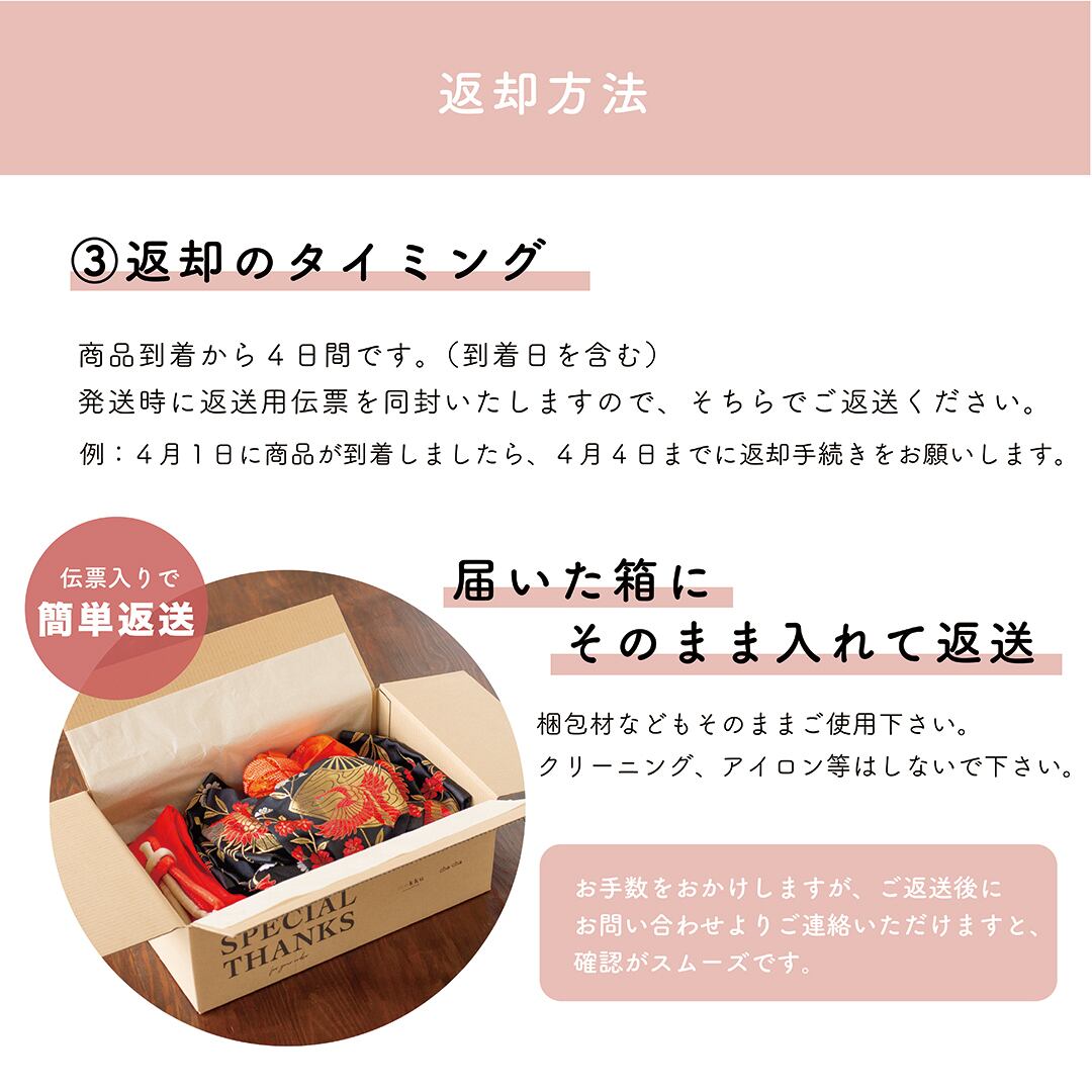例:4月1日に商品が到着したら、4月4日までに返却手続きをお願いします。