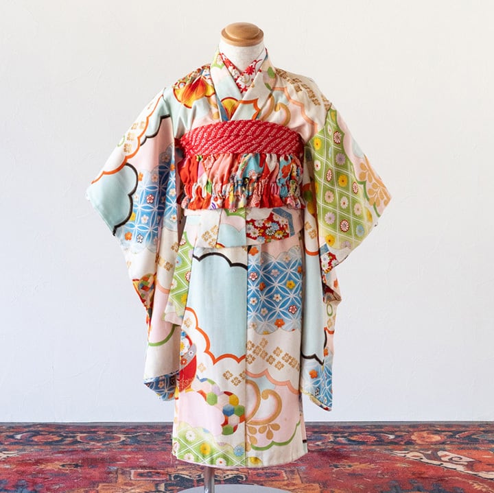 昭和レトロな雰囲気が可愛い、アンティーク調の七五三着物が、簡単に着せられる二部式セパレートタイプで登場!