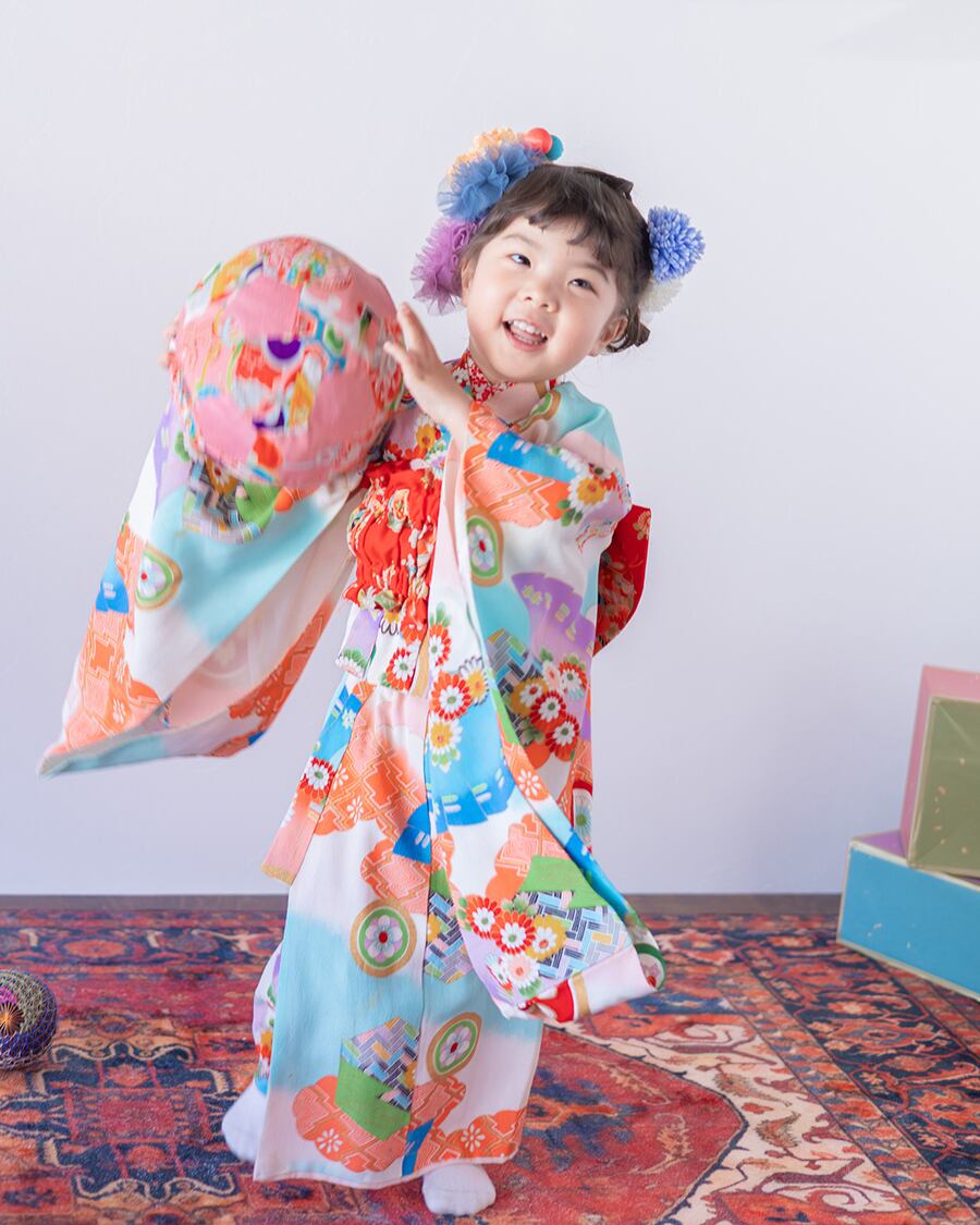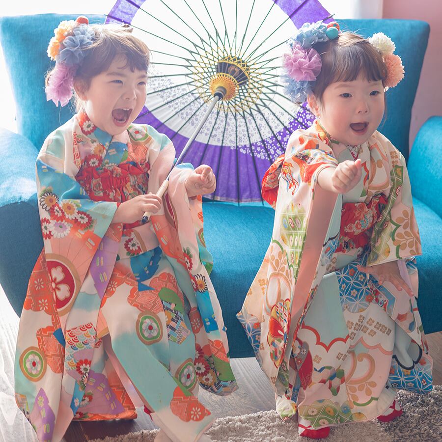 昭和レトロな雰囲気が可愛い、アンティーク調の七五三着物が、簡単に着せられる二部式セパレートタイプで登場!