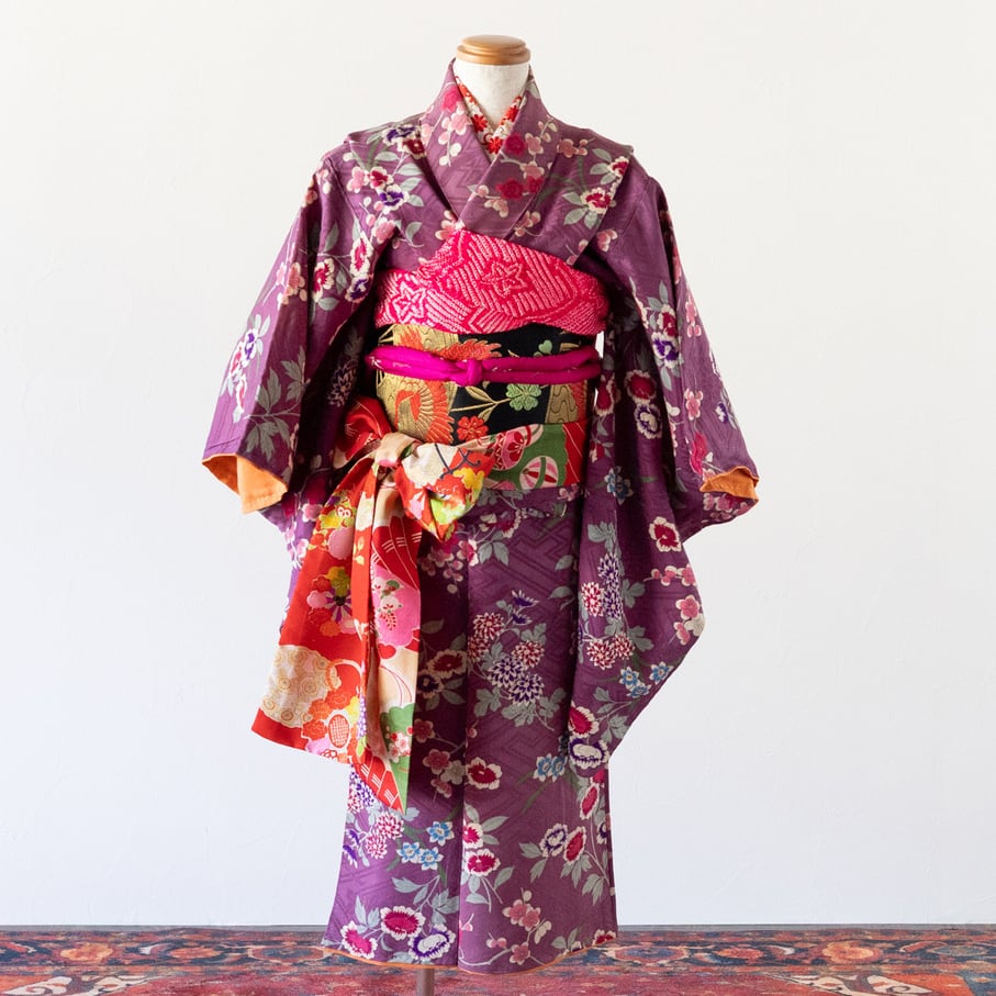・着物一式(着物・半襦袢・作り帯・帯揚げ・帯締め・しごき)