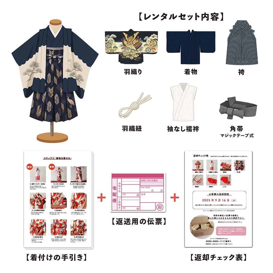 [kim-men008]5歳6歳/105〜120cm【レンタル商品】[お着物セット]七五三・袴・着物