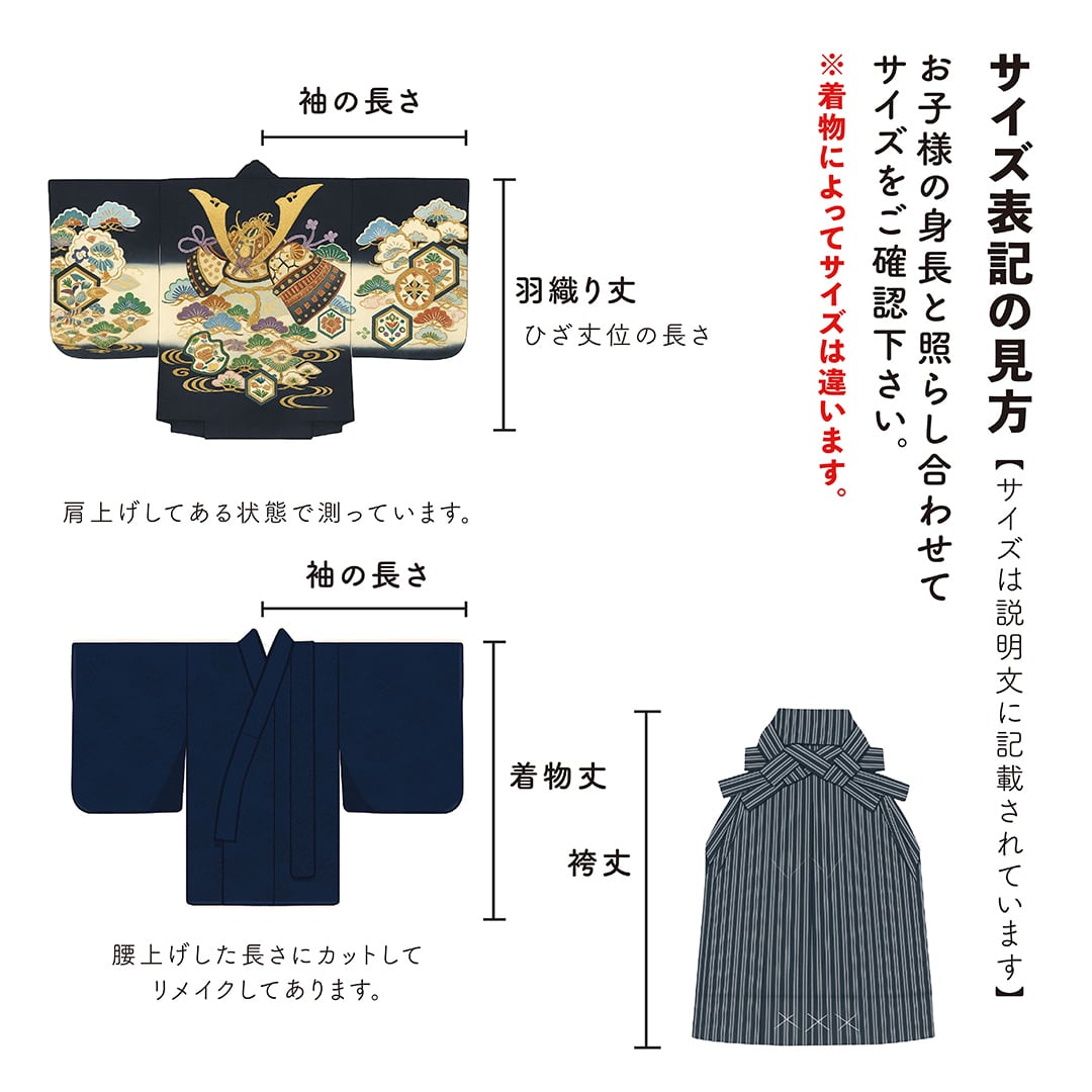 ・お子様の身長と袴丈を照らし合わせて、サイズをご確認下さい。
