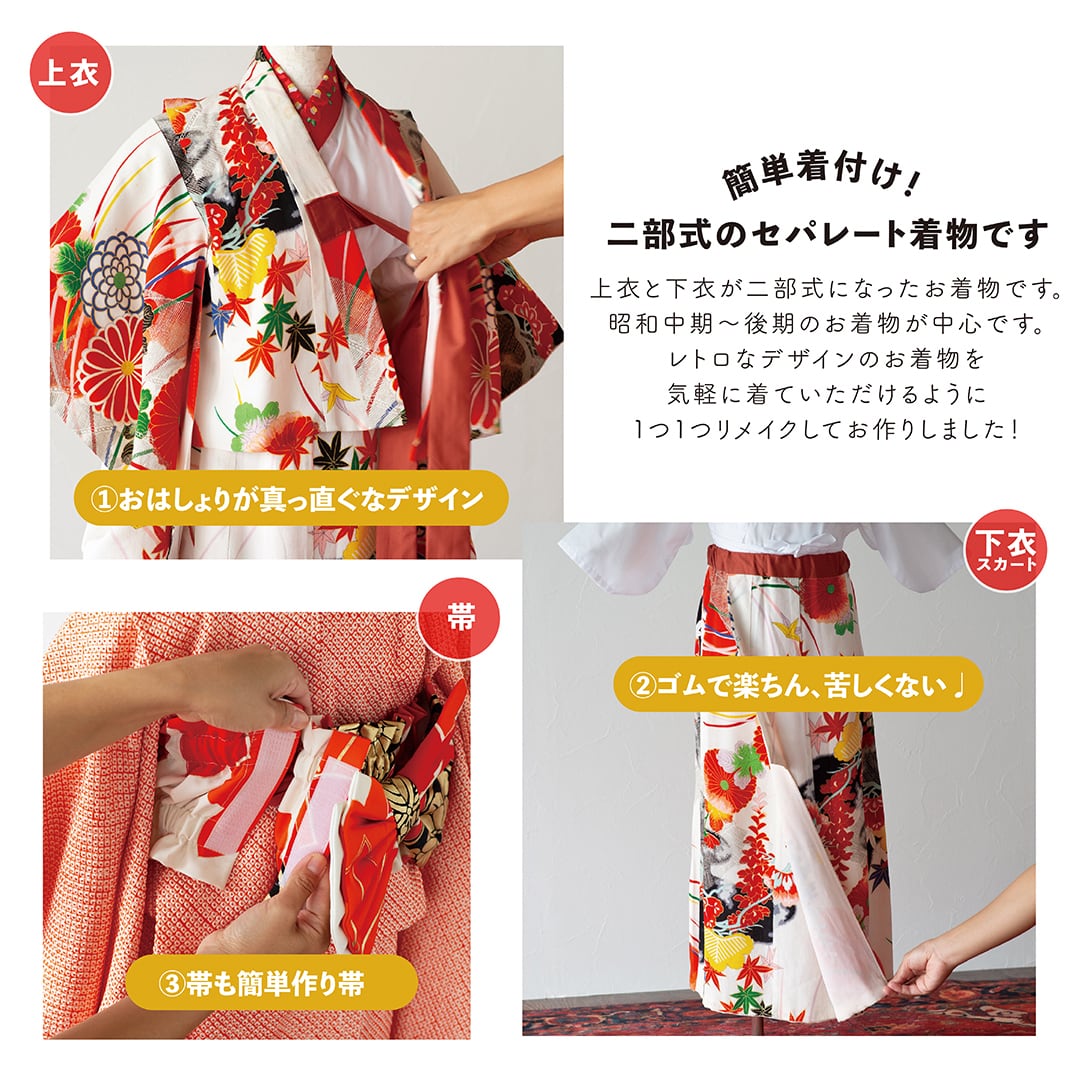 上衣は少し斜めにデザインされており、着せた時に「おはしょり」が自然にまっすぐ整います。
