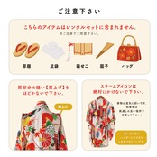 ※草履・足袋・扇子・はこせこ・バッグ・イヤリングはセットに含まれません。ご自身でご用意ください。