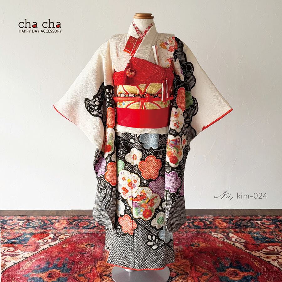 [kim024]6歳7歳【レンタル商品】お着物&髪飾りセット]七五三・2部式セパレート着物