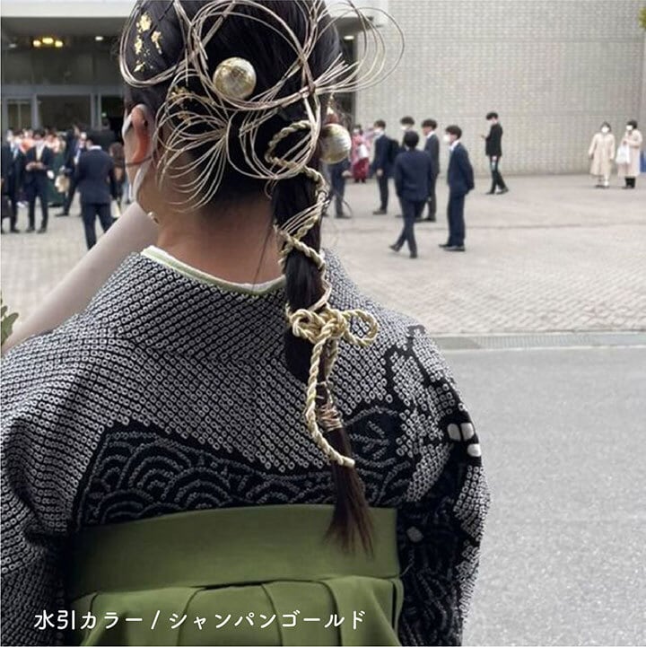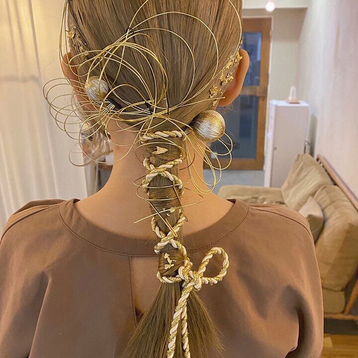 付属の紐は髪に巻きつけり、リボン結びにしたりと色々なアレンジが出来るので、