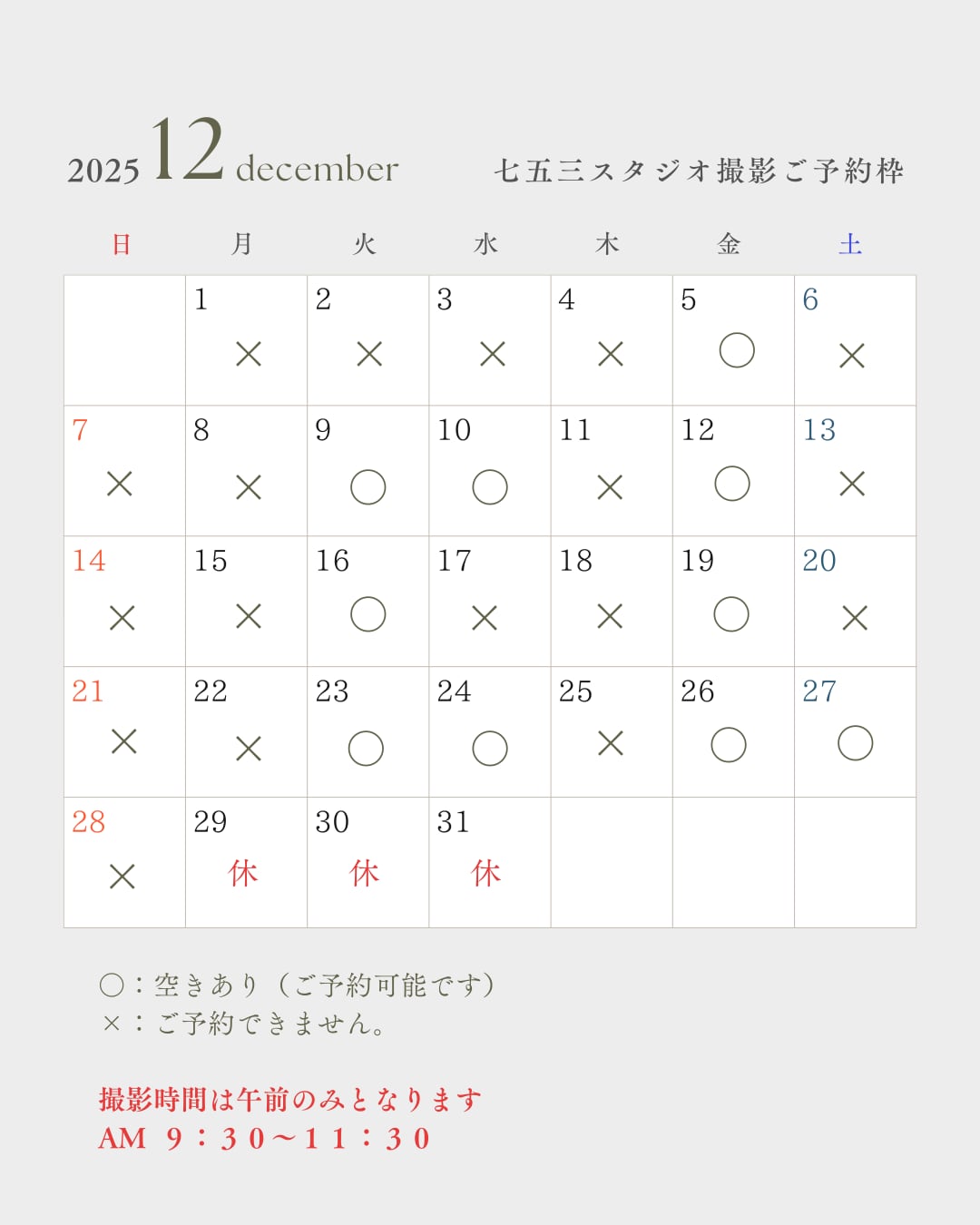 撮影予約枠