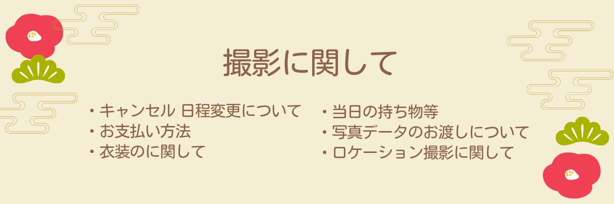 カメラマンのご希望がある場合は、事前にお知らせください。